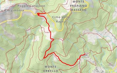 Kurz vor Bocchetta di Margioso, von km 7,8 der Panoramastraße nach Oro (1181 m, Anschluß an Weg 2). Ein weiterer Weg auf der Südseite mit Ende an einer schönen großen Lichtung.