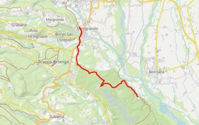 Imbocchiamo la strada carrozzabile sterrata che scende verso la valle dell'Elvo, e prendiamo a sinistra la "strada delle cave". Lasciata la strada per una mulattiera sconnessa sulla sinistra, che ci riporta nella riserva della Bessa, un dedalo di stradine sconnesse ci conduce nella periferia di Mongrando.